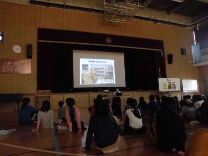 今日はスーパーマーケット「ライフ」から講師の先生をお招きし、スーパーマーケットの売り場における様々な準備や工夫、そして商品が陳列されるまでの舞台裏(バックヤード)などについて、動画を交えて分かりやすく説明していただきました。
