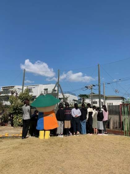 6年生の子どもたちに見つかるとすぐに取り囲まれ、どこかへ連れていかれてしまいました。ハテどこへ?