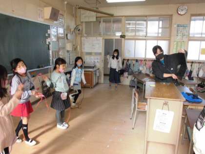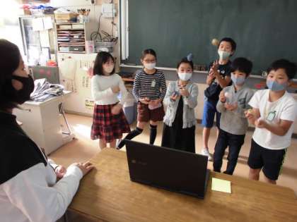 子どもたちはグループ毎に教室のパソコンを通じて、施設の方々に自分たちの演技を見てもらったり、質問に答えてもらったりしました。