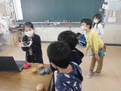 これはあやとり、ですね。昔遊びだったら、お年寄りの方たちにも分かりますものね。