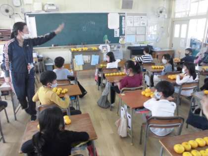 先生たちのご理解と子どもたちの協力のおかげで、収穫したみかんの数が分かりました。