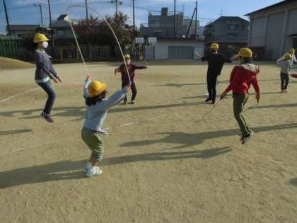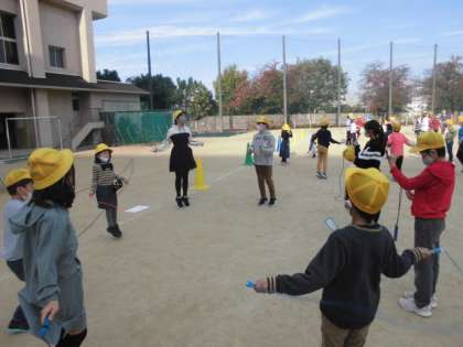 分散形式で行ってきた児童集会では、なわとびのいろいろな跳び方を班の中で交流してきました。