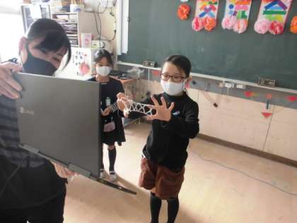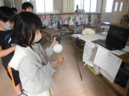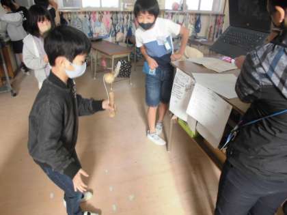 ぶんぶんゴマに、けん玉、あやとりと次々に発表していきます。