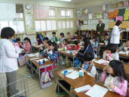 歯科衛生士の先生と歯科校医先生をお招きし、2年生が、歯みがき指導の学習を行いました。