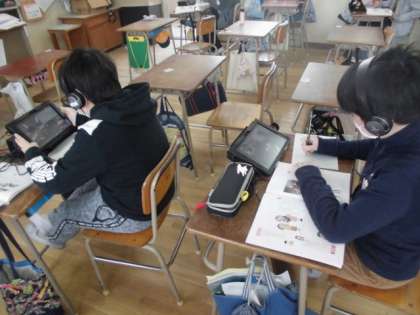 道徳の時間に学級を複数のグループに分け、双方向通信を使ったグループ会議を行いました。チームのメンバーが各所に分かれたら会議スタートです。
