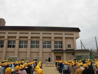 看護当番の先生からは、朝会に間に合うように登校することや、冬季の服装や持ち物で気を付けること、朝教室に上がるときには階段を走ったり人を押したりしないことなどについてお話がありました。