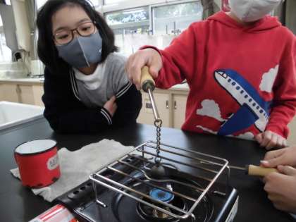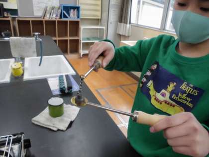 火で熱する前にはできていた玉の輪くぐりを加熱した後もできるのかなどについて、結果の予想をしながら、慎重に実験に取り組みました。