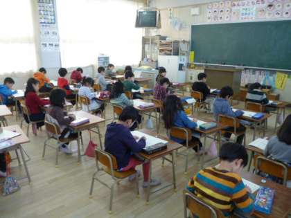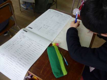 9時45分の開始に合わせて全学年一斉に問題に取り組むと、それまでにぎやかだった校舎が、一気に静まり返りました。