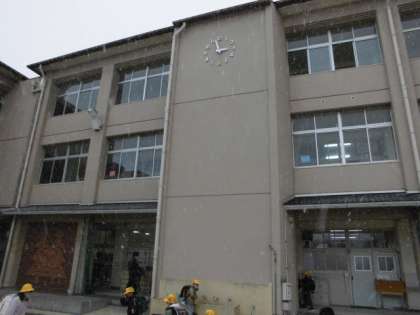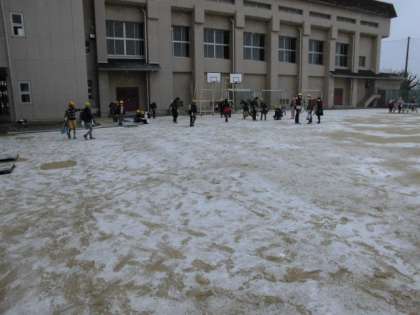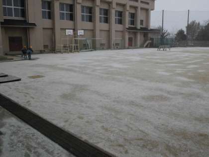 午後3時頃から降り出した雪が、運動場にうっすらと積もりはじめました。