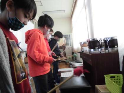 使用する楽器が制限されている中、継続して合奏に取り組んでいる子どもたち。