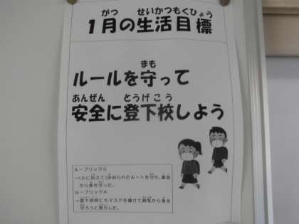 1月の生活目標は「ルールを守って安全に登下校しよう」でした。