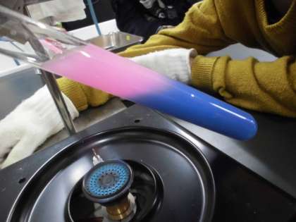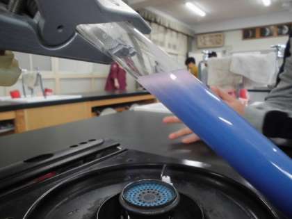 試験管の底をあたためる場合と水面近くをあたためる場合の二通りを確かめます。