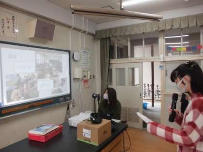 児童集会の時間にTeamsを使って、クラブ紹介のスライド上映をしました。
