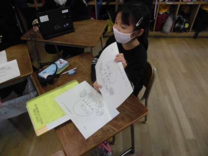 自分がまとめたチャート図を見せながら、自分がありがとうを伝えたい人について、グループで発表し合い、全体で交流しました。