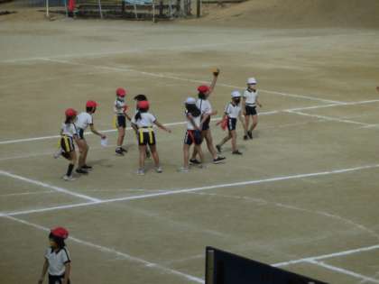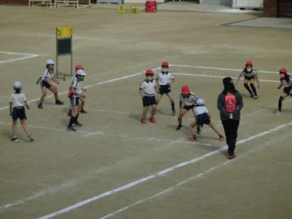 4時間目の運動場を覗くと3年生がタグラグビーをしていました。