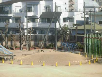 晴明南のトレードマーク、校庭の築山がしばらくの間養生期間に入ります。