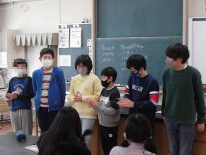 一年間の反省について話し合ったあと、6年生が一人ずつ後輩にメッセージを贈りました。