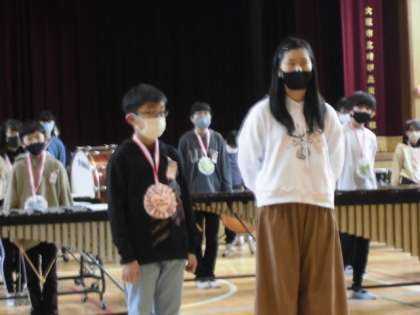 6年生が首にかけるメダルは1年生がプレゼントしてくれたものです。