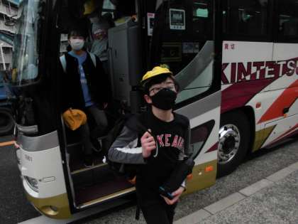 眠たそうな顔でバスから降り立つ顔がチラホラ…。