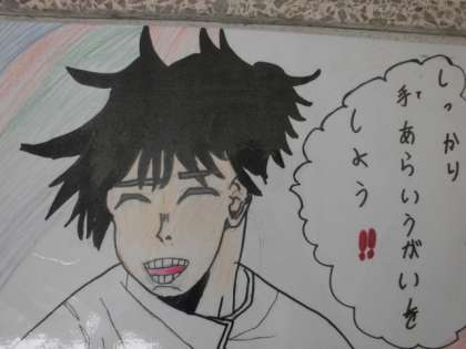 先日児童朝会で、遊んだ後に手洗いする児童の数が減ってきていることを報告した4年生は、vsコロナへの啓発活動の一環として、いま学校の各所にポスターを貼っています。