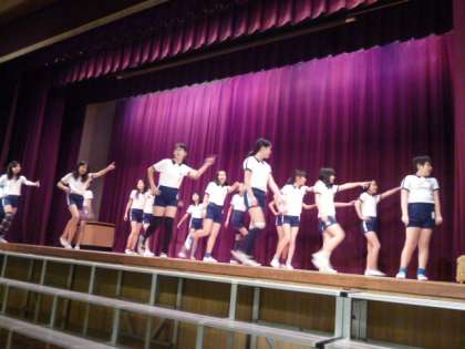 ダンスクラブ…自分たちが選んだ曲に、自分たちで振付を考え練習したダンスを発表してくれました。嵐の「ガッツ」など3曲披露してくれました。みんな楽しそうに踊っていたのが印象的でした。