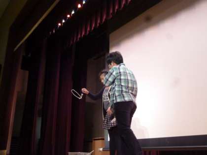 科学クラブ…発表で、今年度クラブでも行ったシャボン玉作りを実演してくれました。家庭用洗剤に砂糖を混ぜると大きなシャボン玉が作りやすいそうです。みなさんどうぞチャレンジしてみてください。