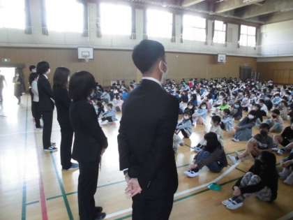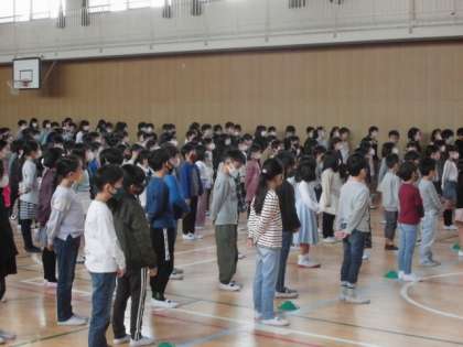 コロナ禍ですが、全員マスクを着用しながら、小声で心をこめて校歌を歌いました。