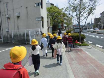 今日からの3日間(木・金・月曜日)、3つの下校コースに分かれて集団下校をします。