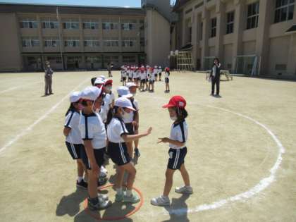 運動場で体育をしている1年生を見かけました。