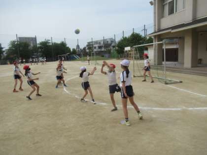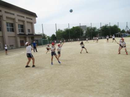 子どもたちのどこか覚束ない動きを見て、先生から「前へ出す!止まらない!すぐ投げる!」などの指示が出ていました。