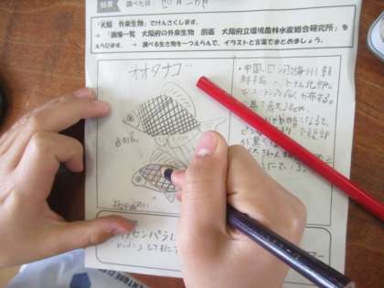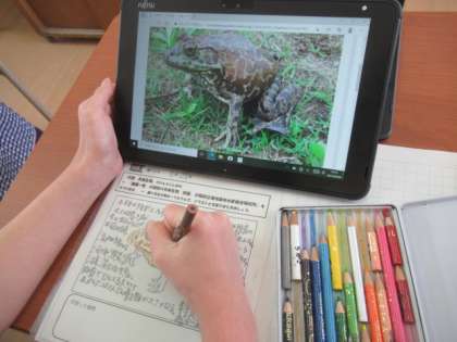 4年生が端末を使って、大阪府に生息する外来生物を調べていました。