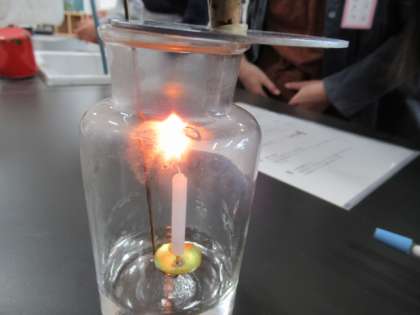 蓋をしたガラス瓶の中で、まずはろうそくを燃やします。