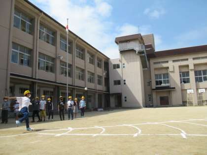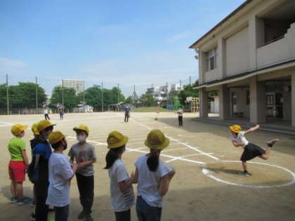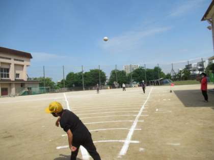 来週は天候が思わしくないとのことで、3年生以上の学年がソフトボール投げの記録を取りました。
