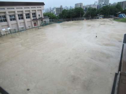 梅雨時の運動場