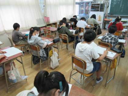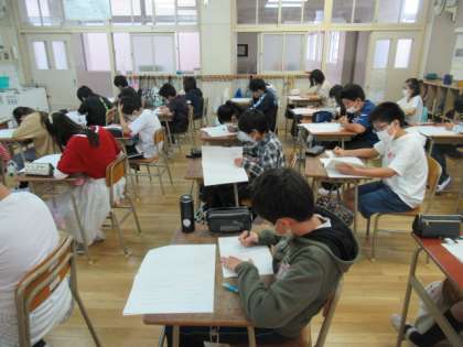 午前中の3時間で、国語科・算数科の記述試験と質問紙調査を行いました。