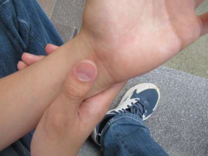 突然ランニングを始めたかと思いきや、トラックを一周するといそいそと日陰の廊下に座り、徐に自分の手首を掴んで脈をとり始めました。