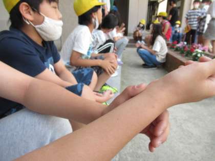 暑い日差しの中、ガヤガヤと理科室から運動場に出てきた6年生。