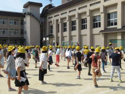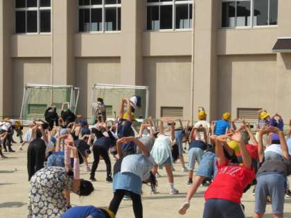 月曜日の朝一、全校で取り組むストレッチ運動。