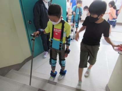 何だか装具をつけて楽しそうなイベントだと思いきや、思い通りに体を動かない自分に戸惑いを隠しきれない子どもたち。