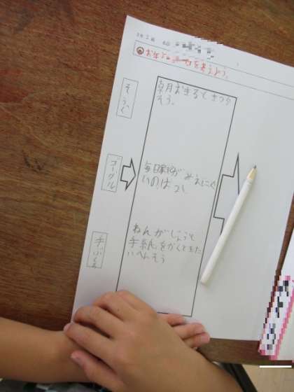 先日までの車いす体験、高齢者疑似体験を振り返った後、晴明南の町に住むお年寄りの生活を想像しながら、どんな場面で大変な思いをされているのかについて考えました。