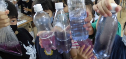 用途多彩なアサガオを使って、今日は色水づくりです。