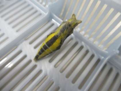昨日お知らせしたサナギは今朝、体を透き通らせ羽化準備に入っていました。