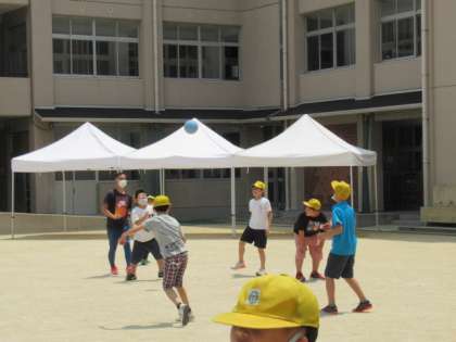 各業間の休憩時間はすべて10分間で、子どもも職員もバタバタと学校生活を送る現在ですが、僅かな休憩時間に蒸し暑い屋外でドッジボールを楽しむ元気な姿も見られます。