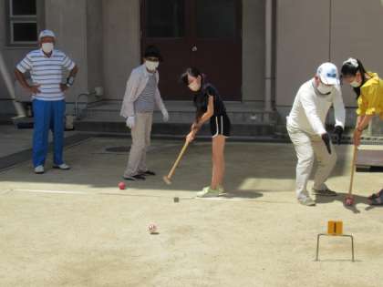 直々にレッスンを受け、ゲートボールに挑戦しました。