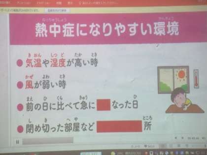 教室では、健康で安全な夏休みを過ごせるよう、子どもたちに指導しました。