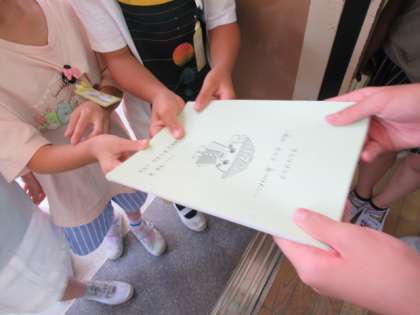 休み時間には、2年生の子どもたちが昨日の学年発表会で宣伝していた「きらりブック」を各教室に届けていました。