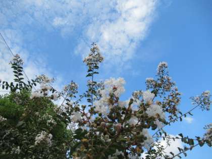 ・青空を背に白色が映えるサルスベリの花がきれいです。