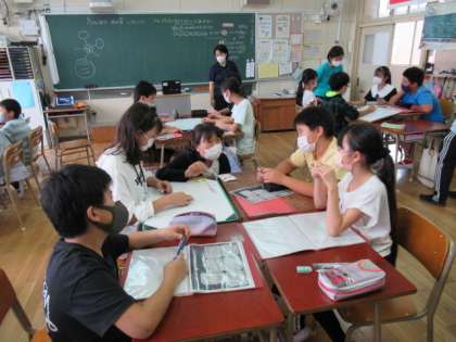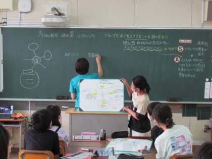 今日は6時間目に6年生の総合的な学習の時間の様子を先生方に見ていただきました。学習内容は、なぜ晴明南の町の住民同士のつながりを強くしていく必要があるのかについて、グループ内で意見を出し合い、全体で意見を交流しました。