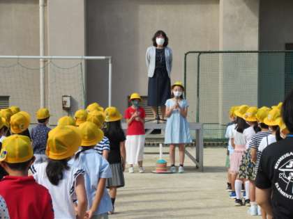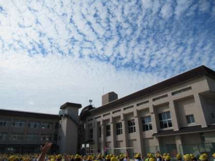 校長先生の「空を見上げてください。」という言葉の先には、うろこ雲が空一面に広がっていました。
