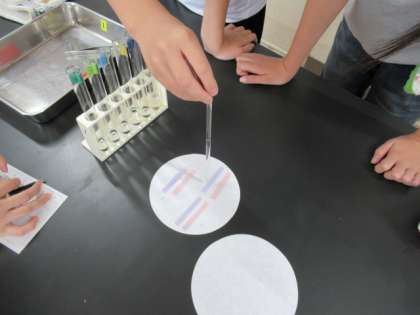 今日は、リトマス紙を使って、水溶液を酸性、中性、アルカリ性の三つのグループに仲間分けしていきました。